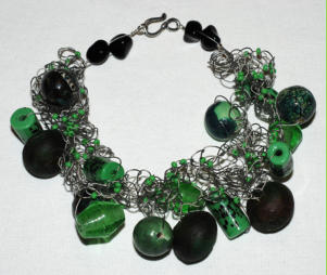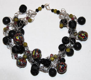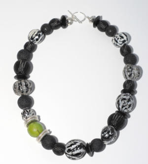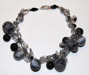 Halskette CITYLIGHTS (verkauft)Halsnahe Kette; Länge 42-45cm (dehnbar);Perlen: Glas-Lava(Halbedelstein)-TextilGrundmaterial: Metalldraht; Hakenverschluss