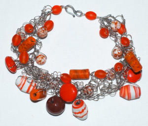 Halskette CITY (verkauft)Halsnahe Kette; Länge 42-45cm (dehnbar)Perlen: Glas-Muschel-Lava(Halbedelstein)-FilzGrundmaterial: Metalldraht; Hakenverschlussbesonders: sehr leichte Kette