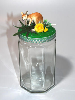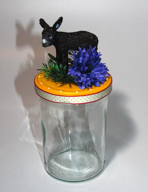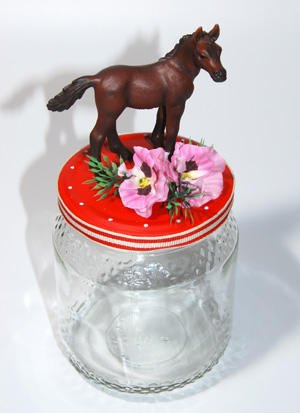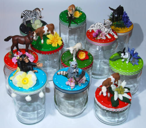 Das Kitschglas ist ein Glas mit einem Schleichtier und Kitsch drum herum.Befüllt mit Süssigkeiten, Tee, Salz, Geld, Kaffeekapseln, und vielem mehr wirdes das passende Geschenk zu diversen Anlässen, oder einfach mal um jemandem Freude zu machen.Einiges ist lagernd oder auf Bestellung kann fast alles mit Wunschtier oder anderen Figuren gefertigt werden.
